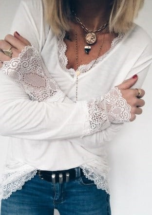 Utsolgt i enkelte varianterTopp med blondeerm - Råhvit