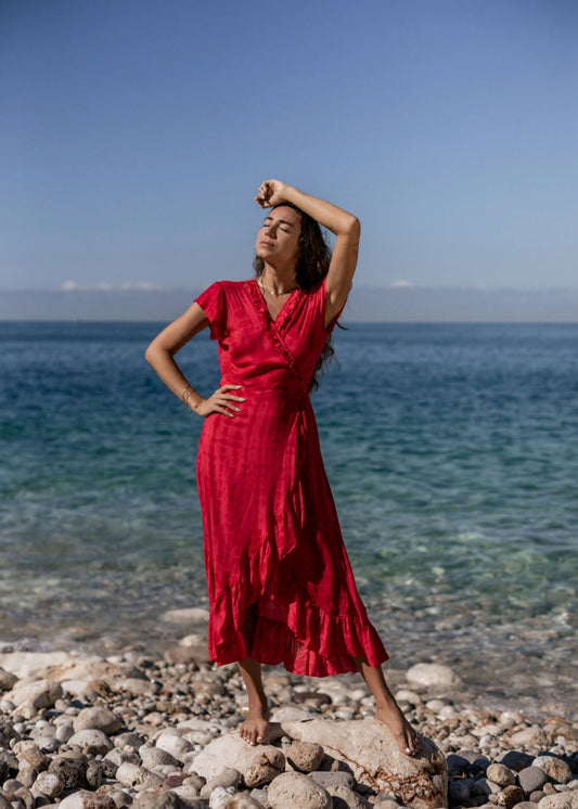 Utsolgt i enkelte varianterLong Wrap Dress Red
